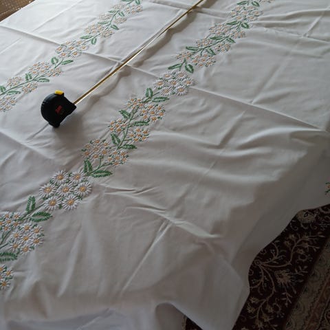 Säljer en stor 100% linnen vintage bordsduk, som är mönstrad, kolla bilder. Långsidor har ett avgränsade mönster. Duken är helt felfri i tyget, inga fläckar eller färgförändringar. Jag säljer för duken är för liten för vart bord. Har inte kommit till användning hos oss.... Jag samfraktar vid behov. Så, kolla gärna mina andra annonser.