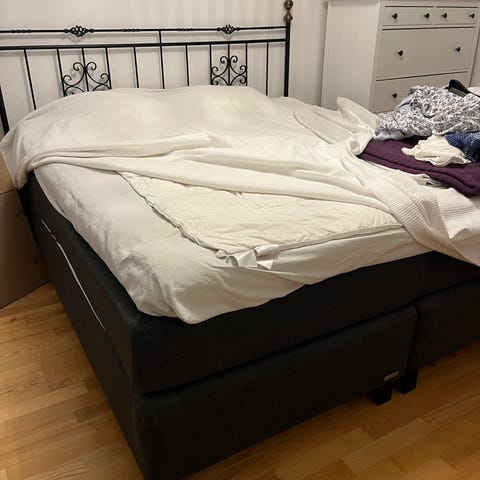 OBS! Sängen hämtas på Östermalm och tidigast den 19 mars och senast under dagen den 21 mars. Vi bor på våning 5 och den går inte in i hissen. Kan dock tas ner som två enkelsängar.