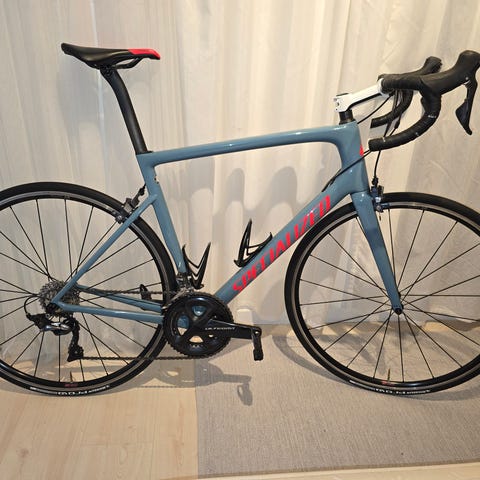 Trek Émonda SL 5 landsvägscykel med ramstorlek 54 cm och 28"/700c-hjul. Cykeln är utrustad för landsvägskörning. Modellen har Shimano 105 växelsystem, pedaler Shimano 105, samt två flaskhållare monterade på ramen. På styret sitter en cykeldatorfäste med cykeldator Edge 820. Passar för landsvägsträning, pendling och längre turer på asfalt. Perfekt för en tur Vätternrunda!