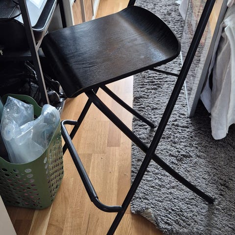 3 st ihopfällbara svarta barstolar IKEA Franklin i mycket bra skick. Design: K Hagberg/M Hagberg. Inköpta för ett halvår sedan. Avhämtas i Majorna, Göteborg.