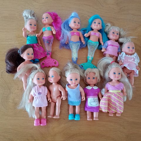 2. 6st Anna dockor, olika längder på håren och outfits, begagnade, 25kr / st