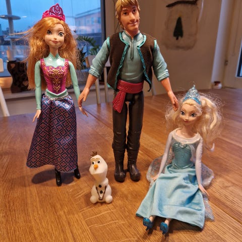 3. 4st Elsa dockor, lite olika längder på håren, olika outfits, begagnade, 25kr / st