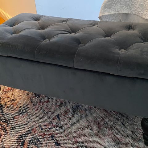Säljer en rymlig och praktisk sängbänk från Mio, köpt 2019. Perfekt för förvaring av täcken, kuddar eller kläder vid fotänden av sängen.
