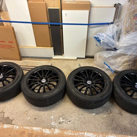 Fyra Michelindäck 235/45 R17, på 9” skrotfärdiga OZ alu-fälgar.