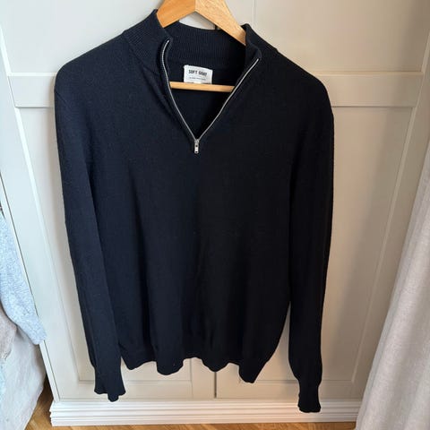 Tröja med dragkedja framtill och krage. Långa ärmar med muddar. Logotyp broderad på bröstet. Tröjan har en rak passform. Är större i storlek, passar XL. Längd 85 cm, bredd 63 cm. Använd 1 gång
