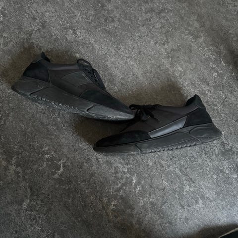 Axel Arigato sneakers i svart färg, storlek 46. Låga sneakers med snörning och vit yttersula. Ovandel i slätt material med broderad fågeldetalj på sidan och diskret logotyp. Passar som vardagssko och till avslappnade outfits.