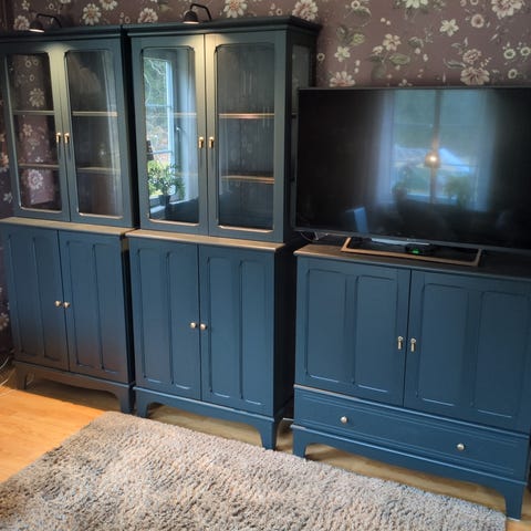 Två stycken vitrinskåp från Jysk. Bredd 132 höjd 198 djup 43 cm.