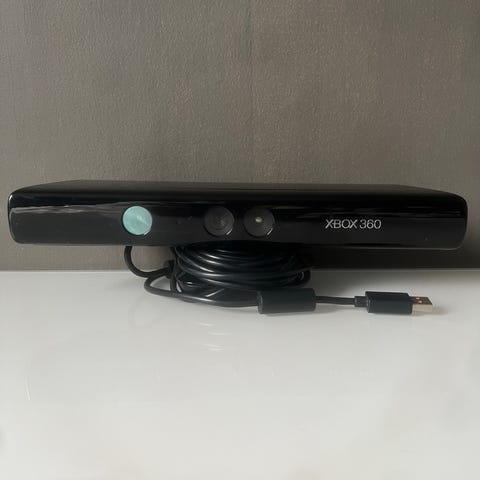 Microsoft Xbox 360 spelkonsol svart med två handkontroller och Kinect