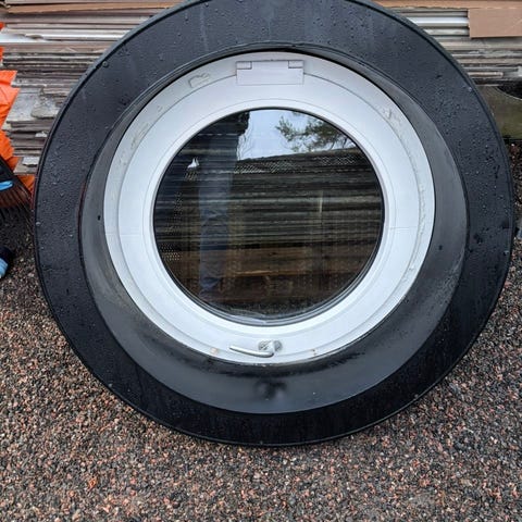 Två begagnade, stora runda fönster med tvåglas i helt okej skick. Mäter totalt cirka 80 cm i diameter, träramen runt om cirka 7 cm. Finns för avhämtning i centrala Motala.