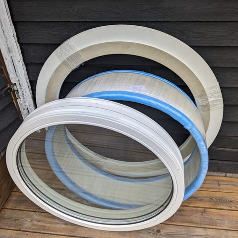 Två stora runda fönster med tvåglas