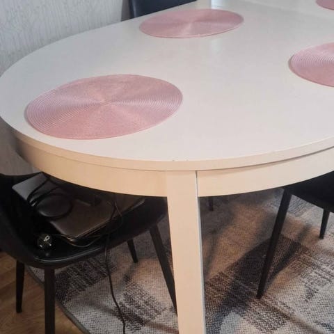 Ett mycket slitstarkt och stabilt matbord med lika starka och stabila stolar.