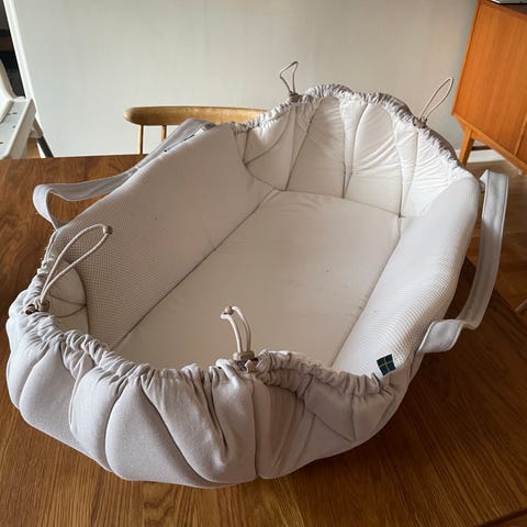 Passar även i de flesta barnvagnar och kan ersätta en traditionell liggdel. Överdraget kan tas av och tvättas. Madrassen är utformad så att barnet ligger stabilt i mitten. Handtag och praktiska sidofickor finns.