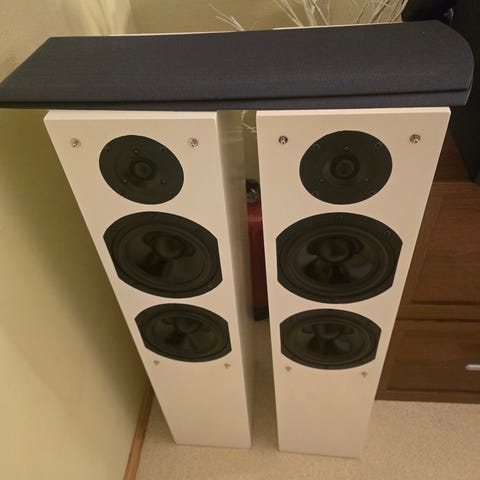Philips högtalare i svart utförande. Smala, stående högtalare som passar till hemmabio eller stereoanläggning. Design med blank frontpanel och integrerat stativ/fot. Lämpliga för placering på golv intill tv eller ljudanläggning. Exakta modellbeteckningar och tekniska specifikationer framgår inte av underlaget.