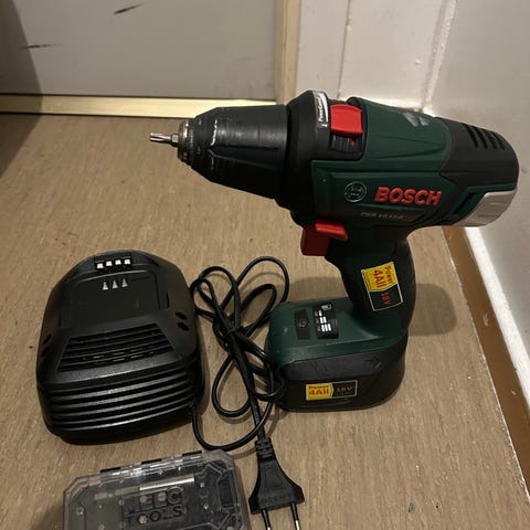 Paket med skruvdragare, hörnslip, batteri och laddare från CoCraft.