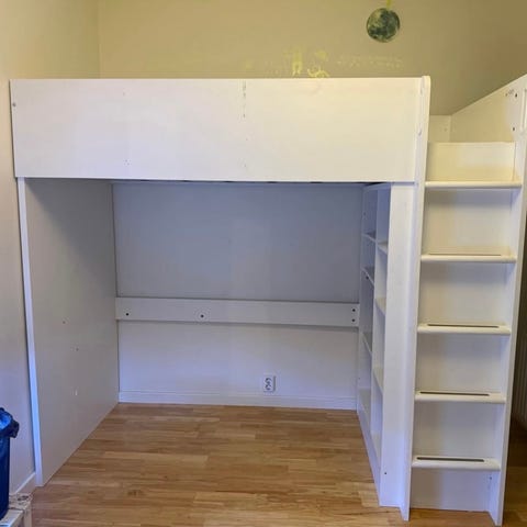 Våningssäng från Väddö möbler, 120 cm bred nere och 80 cm uppe.