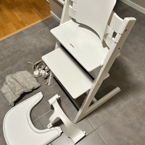 Stolen har använts av ett barn under åtta års tid. Fint skick men lite färgbortfall på ett par ställen. Se bilder! Tippskydd baktill ingår.