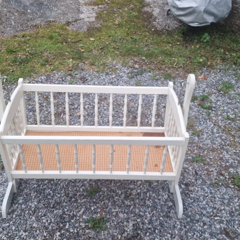 Vit babyvagga / babysäng på hjul säljes.