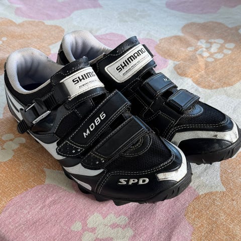 Skorna har en robust sula med bra grepp och är försedda med fästen för cykelpedaler.