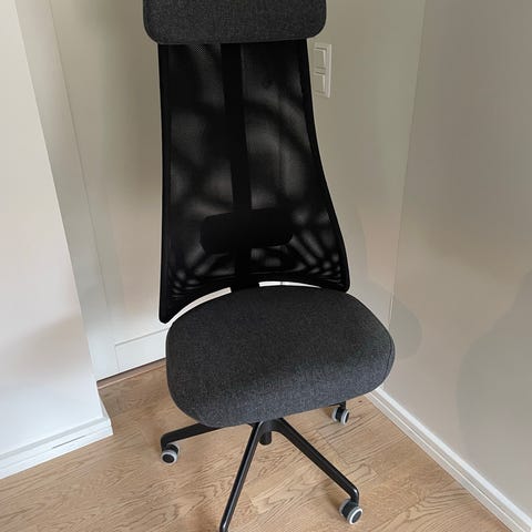Ikea Vallfjället kontorsstol med armstöd och nackstöd.