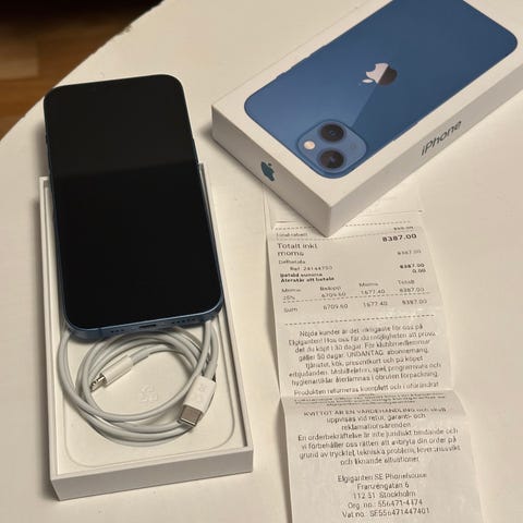 Säljer en Apple iPhone 13 med 128 GB lagringsutrymme i blå färg.