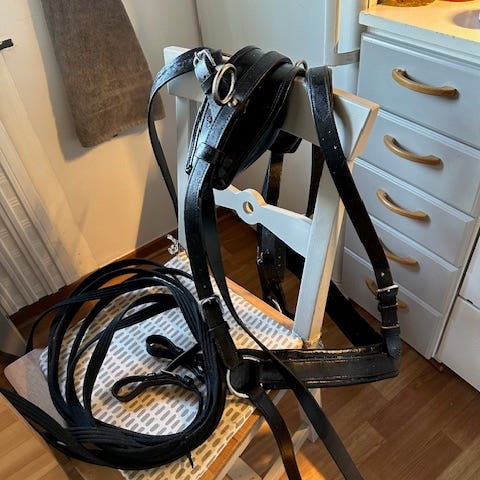 Bröstsele strl cob svart bra skick. Något skav, men inget som påverkar att använda den.