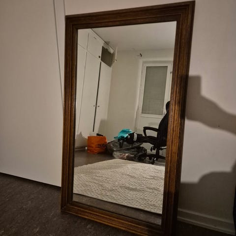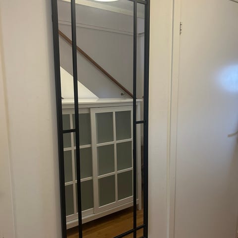 Spegel med svarta rutor/detaljer. 55 cm bred, 150 cm hög.