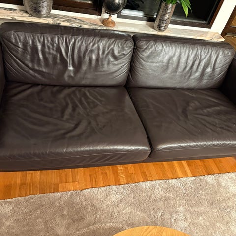 Stilren soffa i svart läder, 3-sits