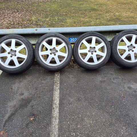 Xtreme fälgar med 5/110 bultmönster, 225/45/17 sommardäck. Däck Continental PremiumContact 6, däckdjup 5-7mm.