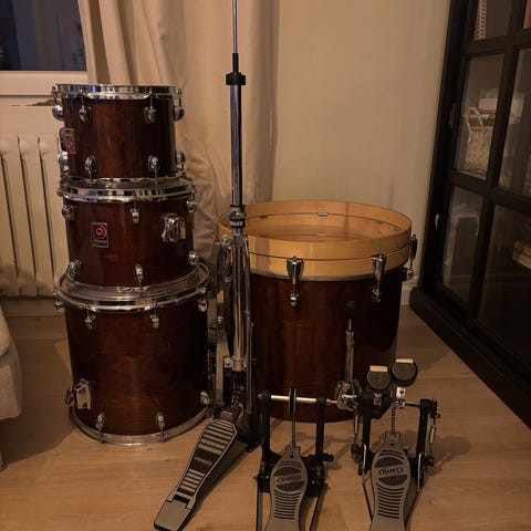 Tama Club jam kit, Charocoal mist bestående av bastrumma 18"x12", hängpuka 10"x7", golvpuka 14"x7" och virveltrumma 13"x5". Tomhållare och cymbalstativ på bastrumman ingår, samt softcase anpassade för trummorna och en Gibraltar bastrumpedal med tillhörande väska. Passar för övning, replokal och livespelningar där ett kompakt akustiskt trumset behövs.