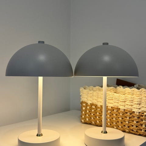 Säljer två stilrena svarta bordslampor som passar perfekt som nattduksbordslampor i sovrummet. Lamporna har en modern design med rund svart fot och ljus lampskärm som ger ett varmt och behagligt ljus.