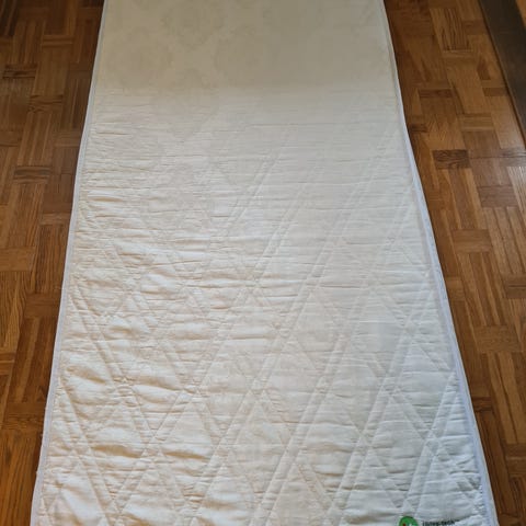 Helt ny bäddmadrass för 90 cm säng. Felköp som jag tyvärr missade returnera i tid. Gummiband i varje hörn för att hålla den på plats. Att ha som extra lager/skydd mellan ordinarie madrass och lakan. Finns Ii Alvik.