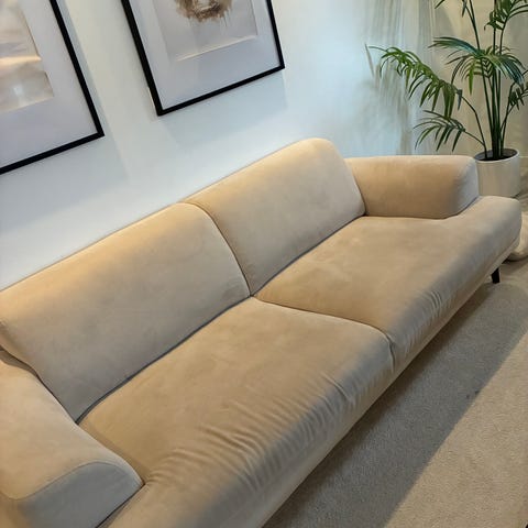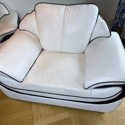 Väl använd vintage lädersoffa med metall ben. Ser precis ut som den ska, dvs inte ny! Halva priset om den hämtas senast på onsdag 18:e mars.