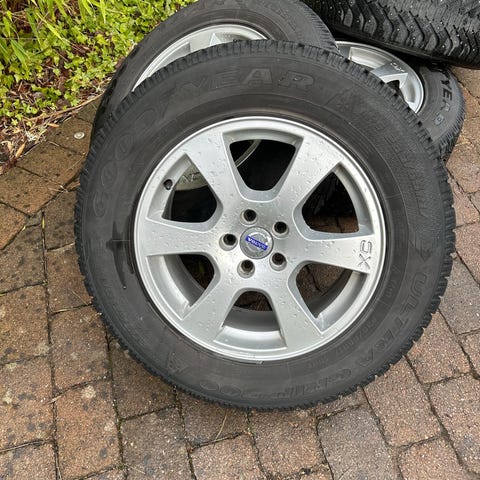 Säljer ett komplett set vinterhjul med dubbade vinterdäck monterade på original Volkswagen aluminiumfälgar.