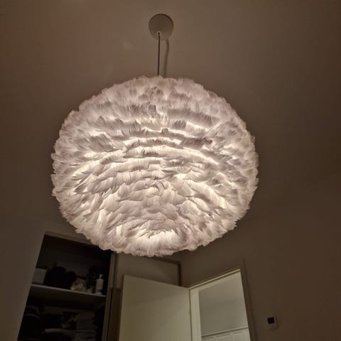 Lampan är i fint skick och fungerar som den ska. Ger bra ljus och passar med vanliga E27-lampor.