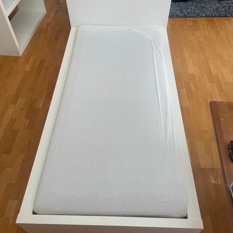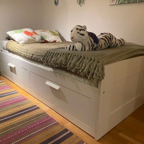 Säljer en Brimnes bädd från IKEA. Det är stommen och fallskyddet som säljs. Dvs inte madrass, täcket eller kudde.