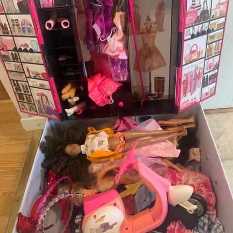 Ett gäng med barbie samt garderob