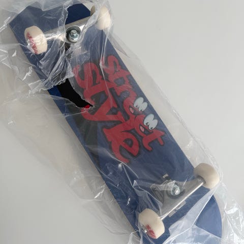 Använd skarebord med tjocka hjul, bra som en första skateboard. Byggd runt 2016 gjord för att glida runt utan mycke stötningar.