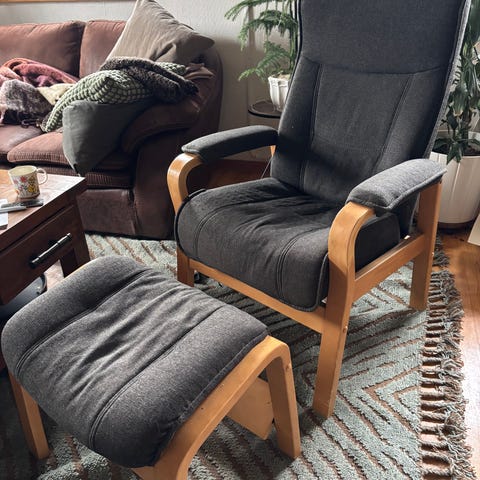 Tillhörande fotpall och stolen går enkelt att fälla ned/upp.