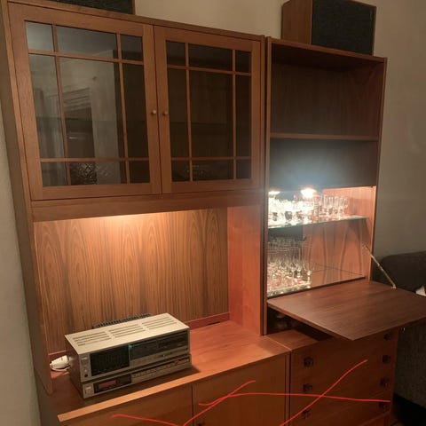 Passar exempelvis i vardagsrum, kök eller matsal som förvarings- och vitrinskåp.