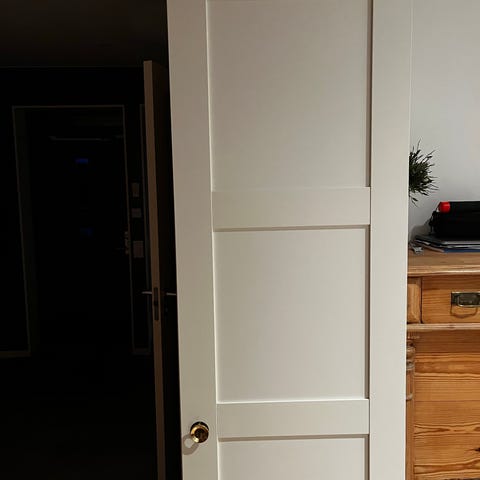 IKEA Pax garderobsstomme med Bergsbo dörr i vit färg. Garderoben består av en hög stomme med en vit, profilerad Bergsbo dörr med tre rektangulära fält. Passar för förvaring av kläder, skor och accessoarer i sovrum, hall eller klädkammare. Levereras i platta paket för montering.