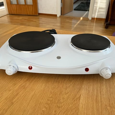 Dubbel kokplatta endast använd ett fåtal gånger under vår köksrenovering. Nypris 389kr, nu 250kr