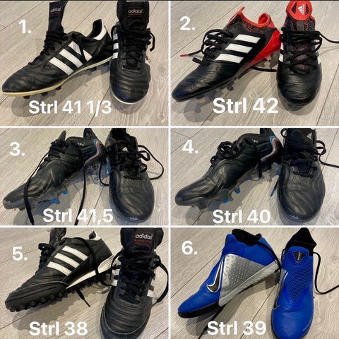 Säljer olika fotbollskor blåa Nike 38,5 400kr