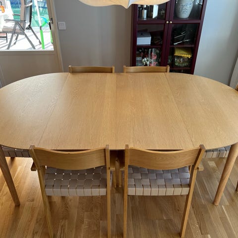 Ikea Stensund ekbord B:100 x L:165 cm, 6 stolar stolar IKEA Klitten, ek.