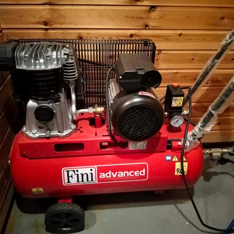 50-literstank låter kompressorn behålla trycket under en lång tid. Det har flera fördelar, bland annat så kan du arbeta en längre stund utan att kompressorn går igång.