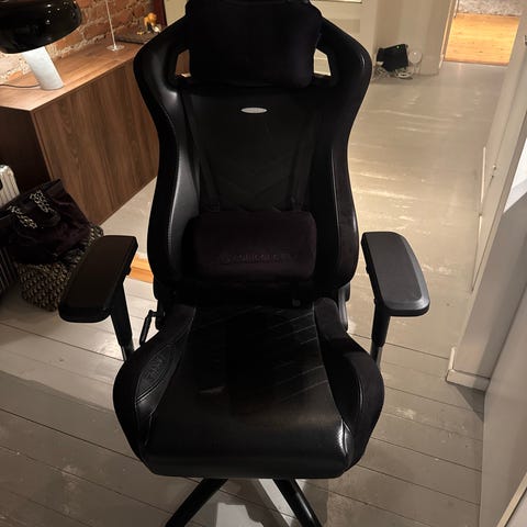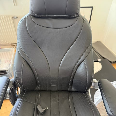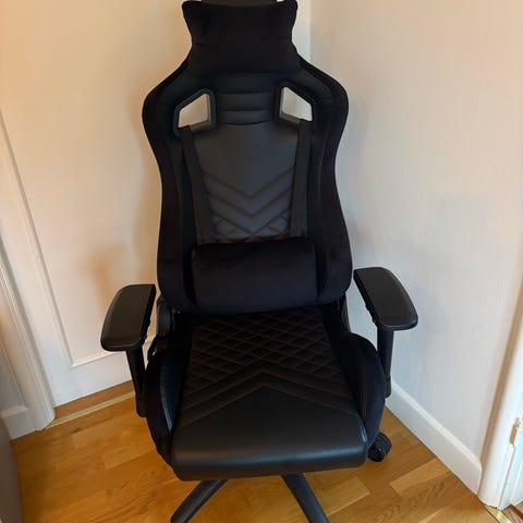 Fungerar bra och är mycket bekväm. En riktig gamingstol av hög kvalitet, köpt för flera år sedan men fortfarande mycket stabil och bekväm. Den kan lutas bakåt för en mer avslappnad sittställning.
