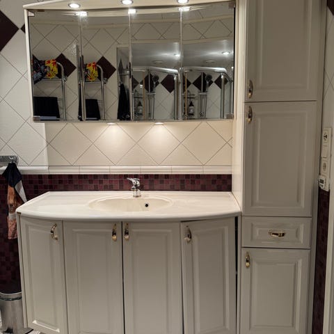 Kartongen skadad men skåp inkl alla delar är intakt.