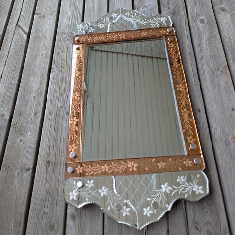 "Glasmästarspegel" troligen från 1920 talet. Antik med vackra ornament.