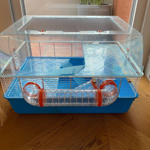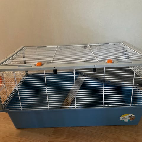 Bur för kanin eller annan gnagare. L98 B56 H54, med tillbehör. Gott Skick. Hämtas på Lilla Essingen, Stockholm.