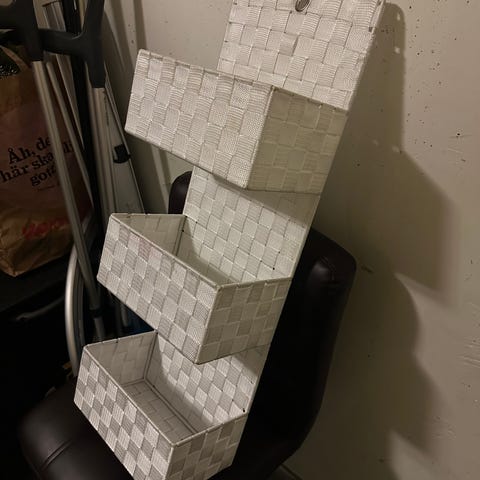 Trevliga korgar säljes. Inte kritvita längre men fortfarande fina. Tyget nytvättat och fräscht. Tre storlekar.