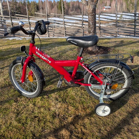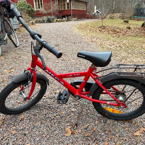 Winther barncykel 12" röd med pakethållare och styrstång